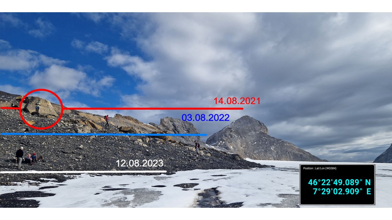 Bereits bei der Gründung der Klimagruppe Simme - Saane war uns klar, dass der nahe gelegene Glacier de la Plaine Morte ein ideales Demonstrationsobjekt für das Aufzeigen der rasanten Klimaerwärmung ist. Deshalb haben wir uns dazu entschieden, dass wir einmal pro Jahr diesen Gletscher besuchen und mit Vergleichsbildern dessen Veränderung festhalten.